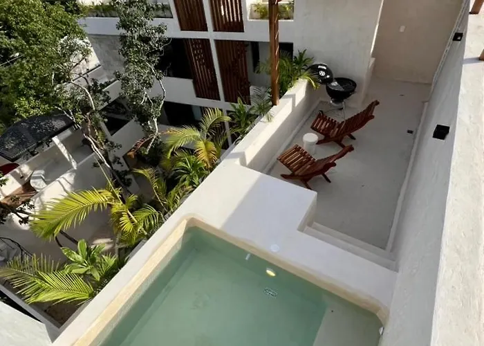 Das 63 m² große Apartment Estudio Ph En Nayal, Tulum ist eine großartige Unterkunft im Bezirk La Veleta, rund 6 Kilometer von den Maya-Ruinen von Tulum entfernt. Dieses 1-Zimmer-Apartment verfügt über eine Terrasse mit einem Blick auf den Garten.